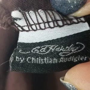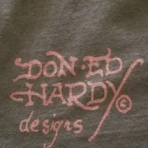 Authentic Ed Hardy as shown in the pics: bulldog tag with website www.doneddhardy.com for the old shirts. Also the small inner tags with serial number