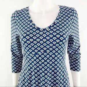Boden Long Blue Patterned 3/4 Sleeve Short V-Neck Dress Size 6