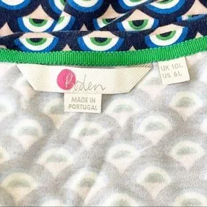 Boden blue patterned short V-neck dress. Size 6 Long. Great condition.