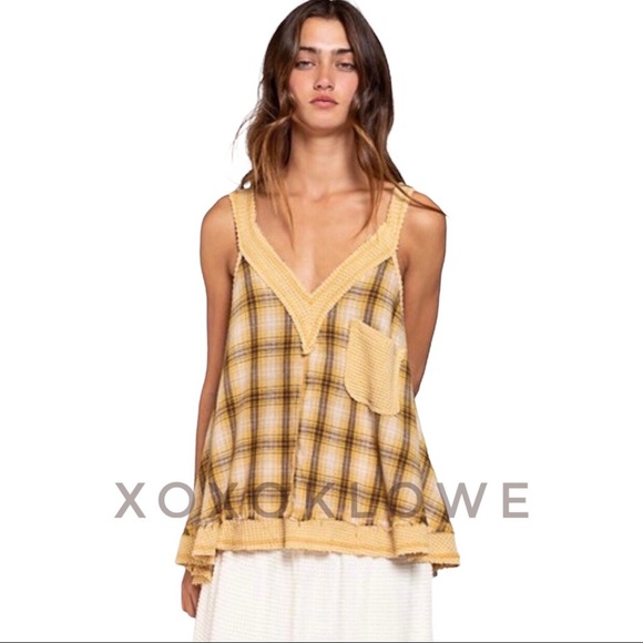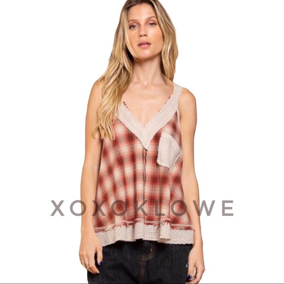 POL Plaid Relaxed Fit Boho Tank Top