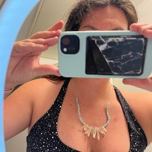 Made by yours truly! Clear quartz paired with light blue agate small beads. Light weight and adjustable chain in back. ❤️ NOW 4 items for $20 all April!