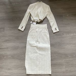 Matching Set - Zara Cropped Striped Blazer with Linen Blend Midi Skirt