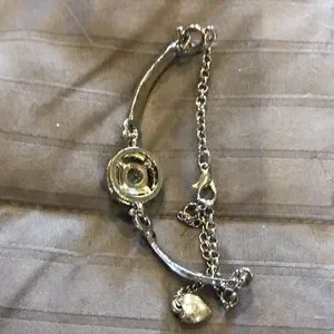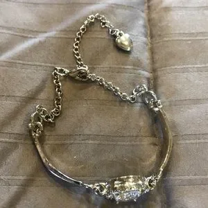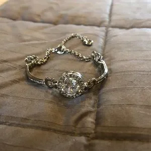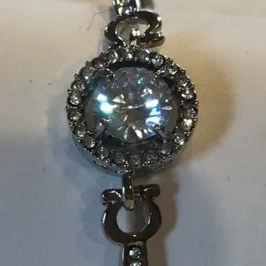 Rhinestone center stone silver tone bracelet with channel set detail, adjustable chain and lobster claw closure. Well made, new