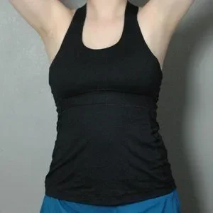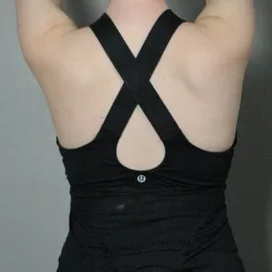Lululemon workout top in great condition! Very supportive, especially with the built in bra. I did not notice the bit of dirt/dust on the back (refer to cover photo) until now, but I will wash it out before shipping.