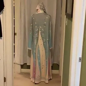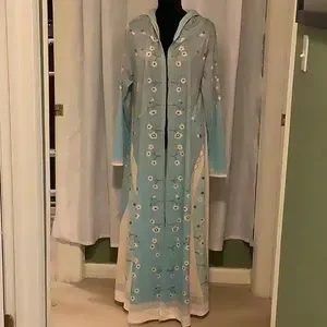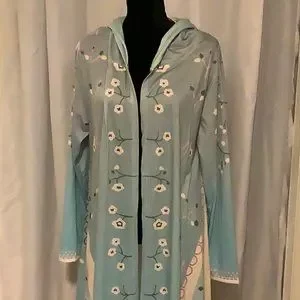 Cotton floral cardigan. 54 inches from shoulder to hem.