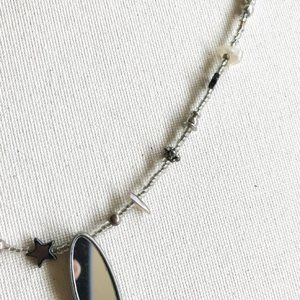 Empath Mirror Necklace Moonstone, Quartz Crystal Hematite Festival Hippie