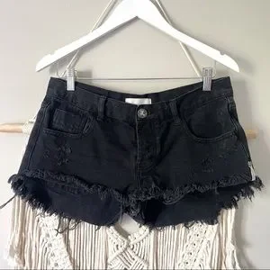 One Teaspoon Bonitas Distressed Black Denim Shorts