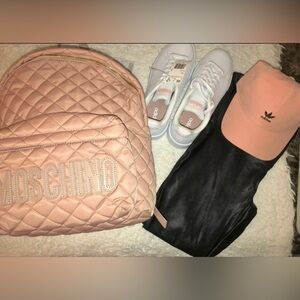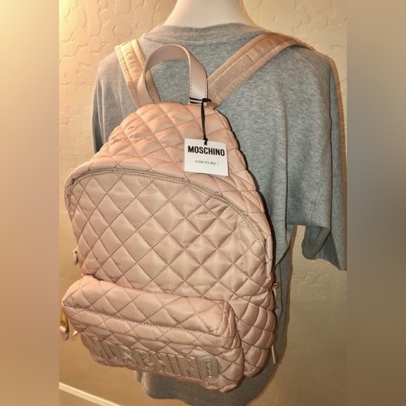🎉HP🎉New Moschino Large Nylon Quilted Logo Light Blush Pink Backpack✨LimitedEd