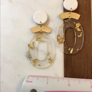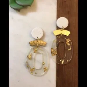 Clay, brass an acrylic earrings