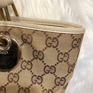 Authentic Gucci Monogram Eclipse Shoulder Bag Tote With White Trim: