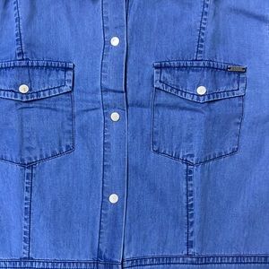 Good condition,two pockets, front open with buttons, full sleeves,armhole to armhole 20”, belt area17” ,length 39”