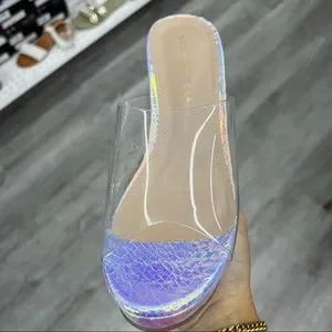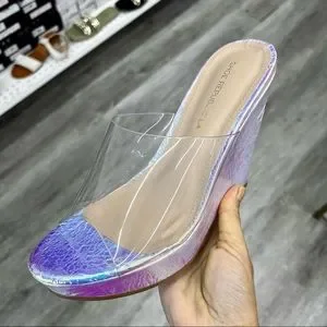 Iridescent silver textured clear front wedge. Price is firm!