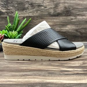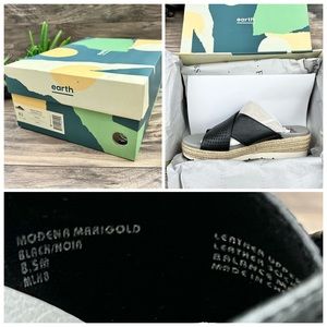Earth Modena Marigold Espadrille Platform Wedge Slide Sandal 8.5M Black Leather