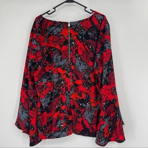 REBEL Wilson X Angels Bell Sleeve Top in Ruby Rock. V-neck. Long bell sleeves. Exposed back functional zipper. Abstract geological print. 100% Polyester. Machine wash.