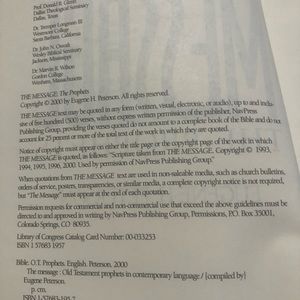 The Message the Old Testament Prophets by Peterson 2000 is in great shape, there is no stains, marked or ripped.