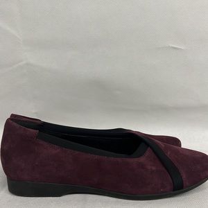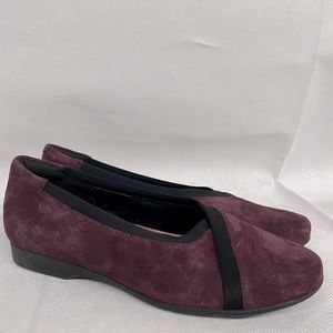 NEW Clark's unstructured suede purple eggplant black flats stretch dress work