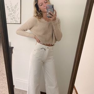Zara white crop jeans / culotte
