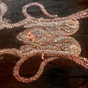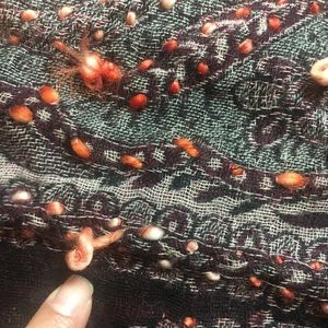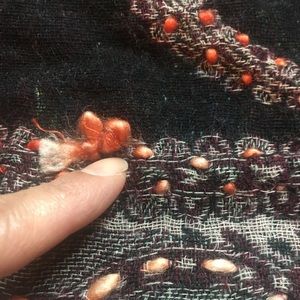 Beautiful free People wrap scarf, one size. I think it’s boiled wool? Definitely wool blend. Colors are fantastic on this. Good used condition. No stains/holes. Measurements are approximate laying flat 20”x63”