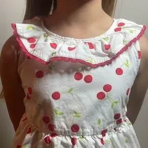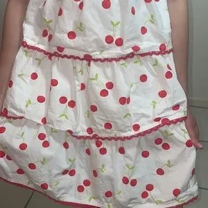 Girls red and white cherries dress by Gymboree. Tiered layered skirt and button back. Perfect summer party dress. Excellent condition. Manufacturing size 8.