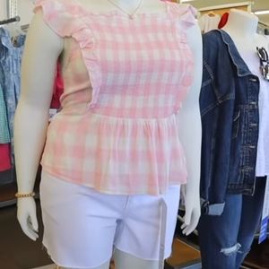 Old Navy Sleeveless Ruffle Trim Smock Gingham Blouse NWT Pink Pastel Plus Sz 2X