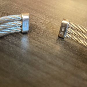 Bangle Bracelet. Labeled 925 (Sterling) & Steel. Great style & super comfortable. Only worn a few times. Detailed flowers and 3 layers of rope. Reasonable offers accepted. Purchased at a jewelry boutique.