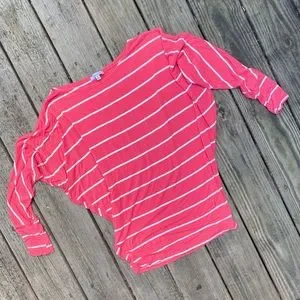 Bright Coral and White Stripe Dolman-Style Top | Legging Friendly | Size M