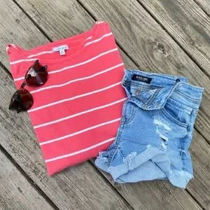Bright Coral and White Stripe Dolman-Style Top | Legging Friendly