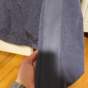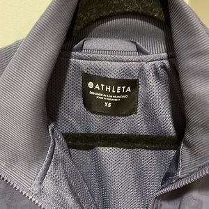 NWOT athleta bomber jacket. Has jacquard animal print and mesh lining. Raglan sleeves and two front zip pockets. Love the bluish gray color but ended up not fitting in with my wardrobe. Body length approx 23” sleeve length approx 21” from armpit to wrist. Smoke free pet friendly home.