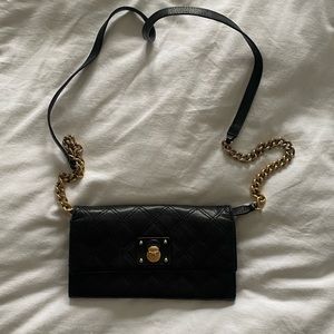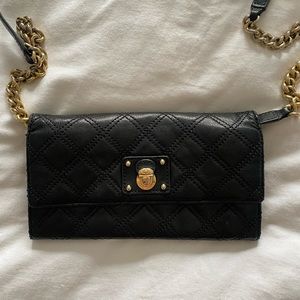 MARC JACOBS quilted black leather wallet on chain with gold hardware
