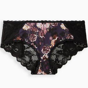 SECOND SKIN LATTICE HIPSTER PANTY - FLORAL BLACK