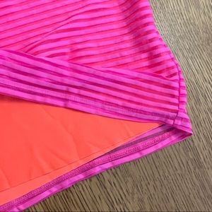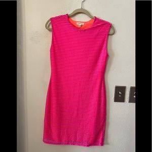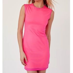 NWOT. Silence + Noise vibrant pink stripe muscle tee dress. Super soft & stretchy knit in a bodycon fit, sleeveless pull-on style. High crew-neckline. Dress lined in orange - alternating sheer stripes allow orange to peek through.