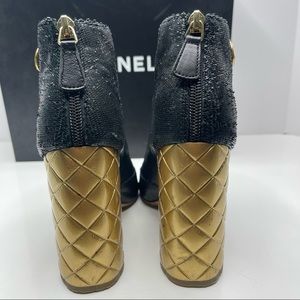CHANEL Fantasy Short Boots Black & Gold Size 39