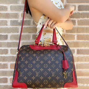 Authentic✅Louis Vuitton Retiro Monogram Red Satchel Duffle Crossbody Canvas