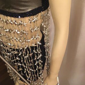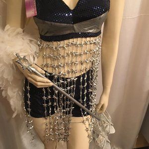 Gorgeous vinatge custom made pixie dress,made 20 yrs ago worn by model in fashin show and then carefully stored untill today! sapphire blue sequin strecth velvet bodice and shorts .silver strats all hand sewn by hand! amazing one of a kind vintage y2k treasure!see my closet for more custom dresses and treasures like this one and pls follow me for more to come daily!