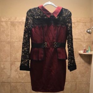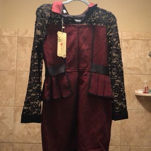 Gorgeous NWT red and black lace dress size medium. The buttons are so cute!! New with the tags, asian medium. I usually wear a large and this is a bit small on me but I can fit in it. I’ll try to add measurements soon.