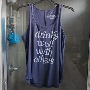 EUC Torrid size 00 navy "Drinks Well With Others" graphic slim fit tank. Only worn a few times!