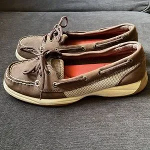 Lightly worn brown leather Sperry topsiders. Sz 6.5