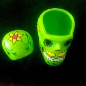 Mexican Hand Painted Green Day of the Dead 3D SUGAR Skull /Trinket Box