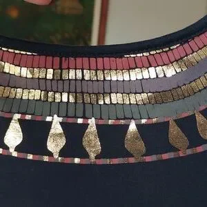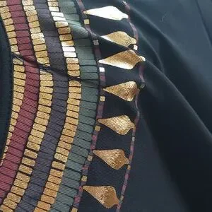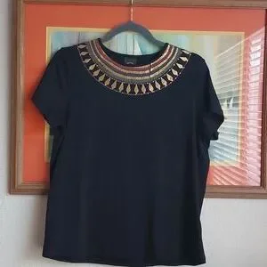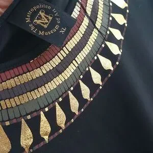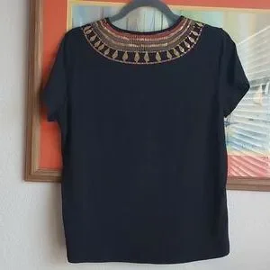 Moma Egyptian t -shirt, beautiful cold applique, it has some imperfections because of painting but doesn't reflect on the beauty of the top. Measurement approximately pit to pit 20", length 24".
