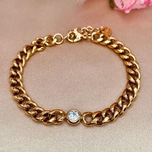 14K Gold Round Diamond CZ Cuban Link Chain Chunky Bracelet