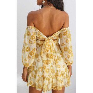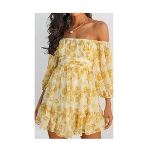 Sunkissed Yellow Off the Shoulder Floral Mini Dress!