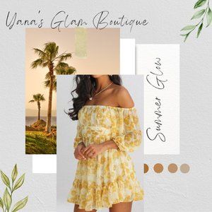 YGB's featured Sunkissed Yellow Off the Shoulder Floral Mini Dress! Gorgeous feels for Spring or Summer! Cute back tie details. Perfect for wedding, brunch, bridal shower ect.