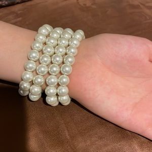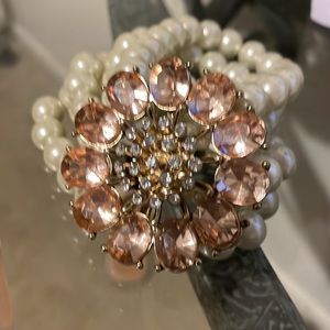 PEARLS AND PINK CRYSTALS FLOWER BRACELET.