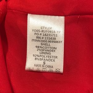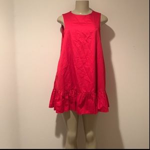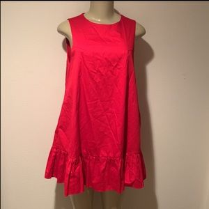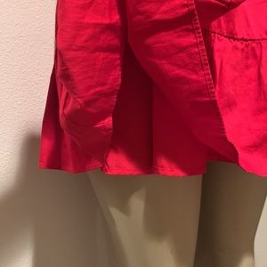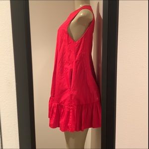 Red sleeveless ruffle mini dress with side pockets. Back button closure. Double lined. Loose fit. Excellent condition. Never worn.