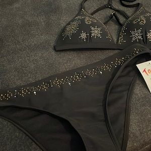 NWT: Black, Gold and Silver Two piece Tahiti Swim suit👙🖤