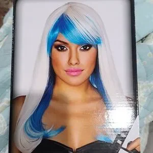 blue and white Pleasure wig long with bangs.