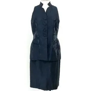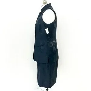Dior 10P Metallic Floral Formal Skirt Suit Navy Petite