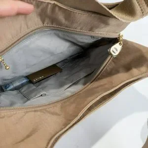 Gold zippers, fasteners, and locks adorn the lightweight nylon San Marino Satchel. Stylishly functional and spacious, featuring meticulous interior organization and separate phone pocket.