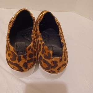 NWOT Cheetah Print Loafers with gold buckle, felt like material, thick comfortable insoles, sight Platform, size 9 wide width