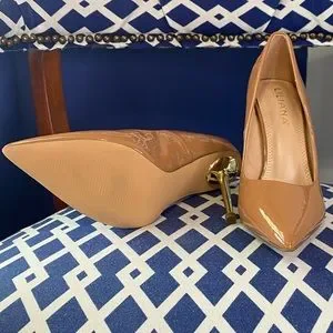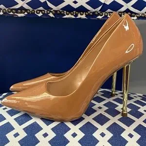 Cognac brown gold pointed classic high heel pumps sz 10